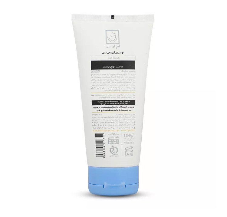 لوسیون آبرسان بدن با رایحه خنک ام ان دی 200 میلی‌لیتری