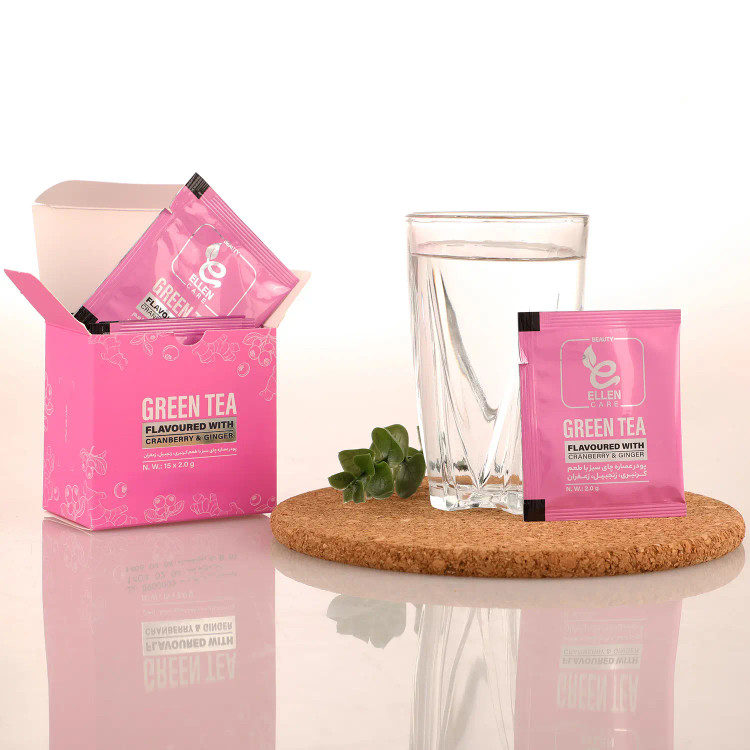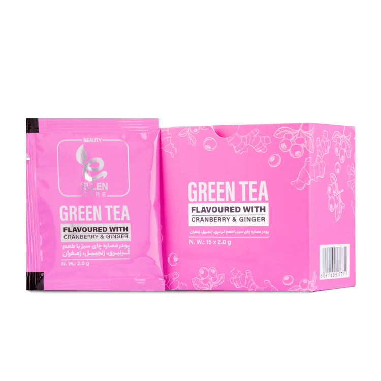 عصاره پودر چای سبز باطعم کرنبری وزعفران وزنجبیل ,١٥ عددی