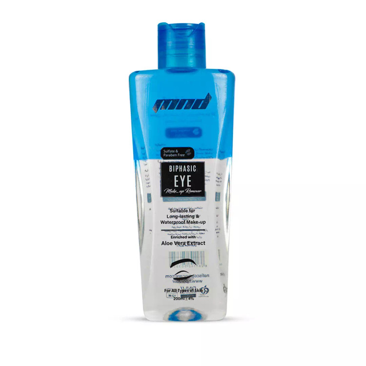 پاک کنندهی آرایش چشم دو فاز MND ، با خاصیت آبرسانی قوی، محافظت کننده و التیام بخش پوست دور چشم است که بدون احساس چربی بر روی پوست، هر نوع آرایش غلیظ، ضد آب و هر گونه آلودگی را به آسانی پاک میکند. این محصول با بهره گیری از مرطوب کنندهها و مواد موثری همچون عصارهی آلوئهورا ، رطوبت لایهی محافظ پوست را حفظ میکند و مانع از ایجاد احساس خشکی و کشیدگی در سطح پوست میشود در نتیجه از ایجاد چروک زیر چشم جلوگیری میکند. از طرفي اين پاككننده فاقد الكل در تركيبات خود است كه با تسكين سوزش پوست در فصلهای سرد سال، رطوبت را به قسمتهای پاك شده از آرايش میرساند. پاک کننده آرایش چشم دو فاز MND برای انواع مختلف پوست مناسب بوده و با فرمولی سبك، پوست حساس اطراف چشم شما را بدون نياز به آبكشی تميز و مرطوب نگه میدارد.