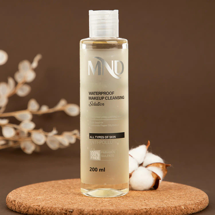 محلول پاک کننده آرایش ضدآب مناسب انواع پوست ام ان دی 200 میلیلیتر